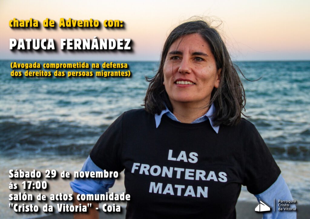 O sábado 29 de novembro ás 17 horas celebraremos a tradicional charla de Advento con Patuca Fernández, avogada da Coordinadora de Barrios e da fundación La Merced Migraciones. Patuca é un referente na defensa dos dereitos das persoas migrantes e tamén experta no ámbito da asesoría xurídica especializada en infancia e situacións de exclusión social. e foi Premio Alandar en 2018 e Premio Nacional de Dereitos Humanos en 2022. É todo un agasallo que comparta connosco a súa experiencia e as súas reflexións sobre a situación e os dereitos das migrantes, polo que agardamos que sexamos moitas as que nos acheguemos a coñecela e a escoitala o vindeiro sábado pola tarde.