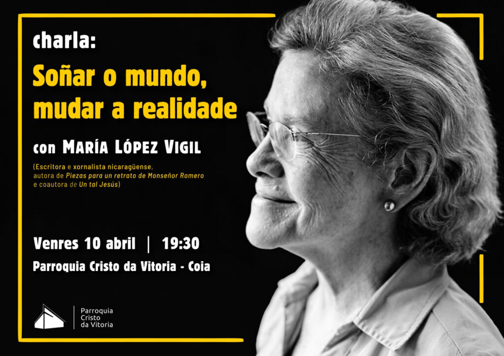 O pasado venres 10 de abril tivemos a inmensa sorte de reencontrarnos cunha antiga amiga da nosa comunidade, a xornalista e escritora nicaragüense María López Vigil, que compartiu connosco unha charla titulada “Soñar o mundo, mudar a realidade”, un agasallo de alento e esperanza nestes tempos difíciles para as persoas e comunidades que cremos nese outro mundo posible e necesario.